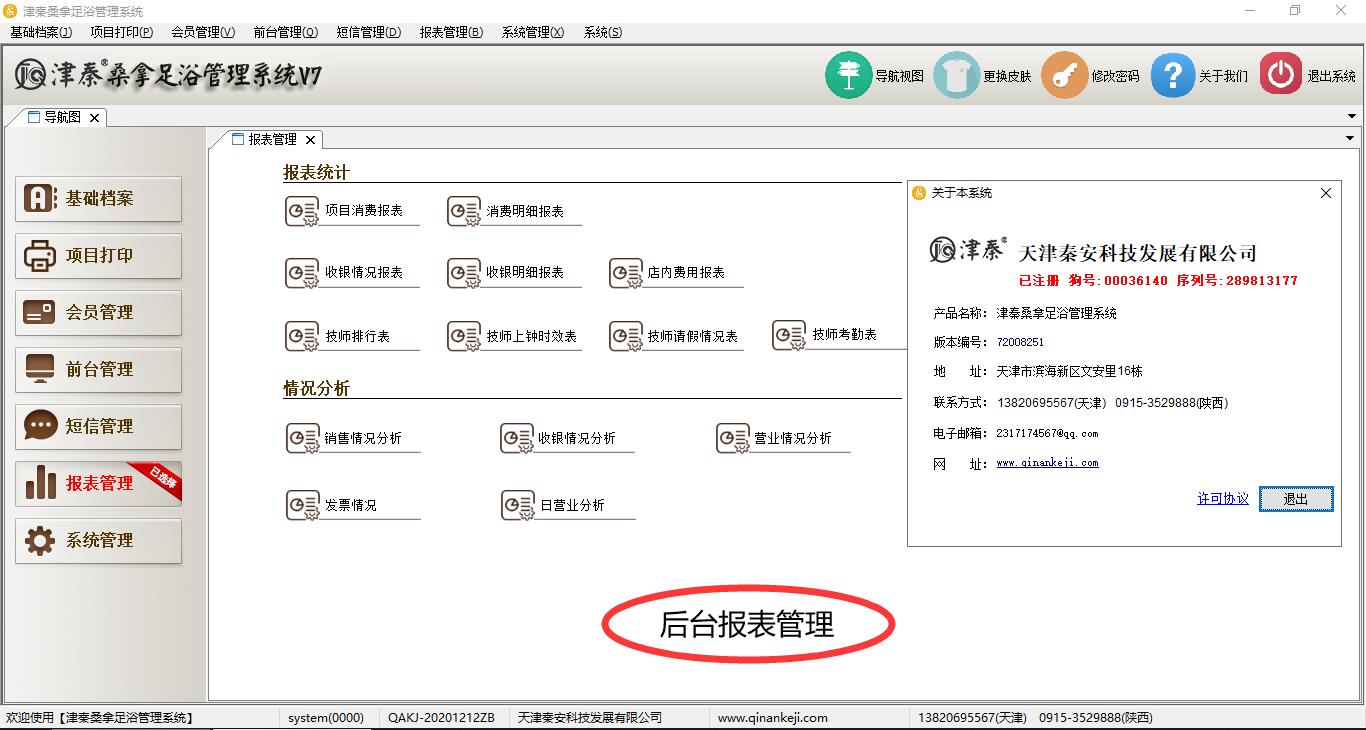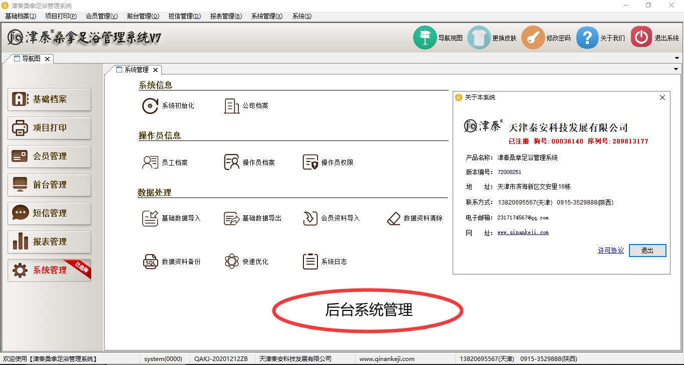 津秦桑拿足浴管理系统V7适用于桑拿 足浴 洗浴 水疗 美容养生会所 按摩店 娱乐会馆等场所.为了更好的适应客户的需求,系统支持洗浴模式、手牌模式、房间模式,使管理更加简单明了......