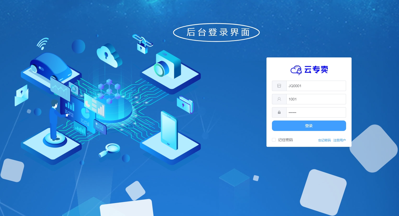 演示账号: 商户号:JQ0001 后台账号:1001 密码:123456